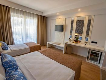 Прекрасный персонал, говорят на разных языках, включая русский. Разнообразный шведский стол с большим выбором. Охраняемая парковка на территории отеля. Море рядом. Отличный алкобар с большим ассортиментом напитков. Есть анимация для взрослых и детей.