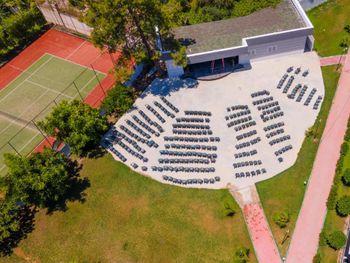 - растения во дворе (красивые цветы и деревья, аккуратный газон)