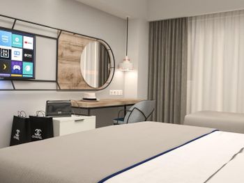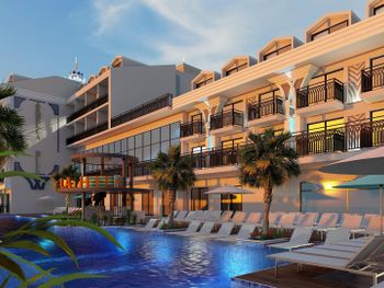 Собственный песчано-галечный пляж находится в 800 м от отеля.