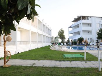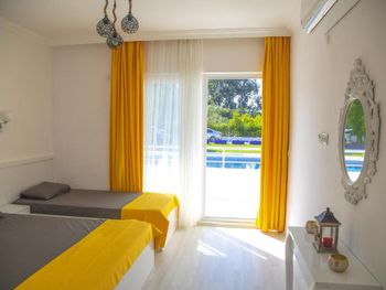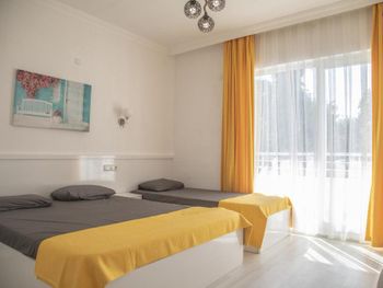 Жили 9 дней семьей (2 взрослых и дети 2 года и 7 лет). Понравилась территория, близость к морю, малолюдность, спокойствие. Имейте ввиду, что в пешей доступности ничего нет. Совсем. Только магазин, к которому нужно перейти 3 дороги (экстримчик небольшой). Можно уехать в Сиде на местных автобусах, проезд примерно 40 лир на человека. Ощущение заброшенности дороги до пляжа, не убирают мусор. Лежаков на пляже на весь отель штук 15, много поломанных и треснувших. Мусорок на пляже нет. Душевых и переодевалок тоже нет, но ведь отель рядом. Зато вы получаете пляж, где очень мало людей, песок и камушки. Песок нам не понравился, а вот камни прекрасные) Море порадовало. Два раза хорошо так штормило. Но мы любим волны) Остальные дни чудесная водичка. Но детям, которые не плавают самостоятельно, без родителей не поплескаться. Сразу довольно глубоко. Трасса слышна. Вайфай приемлемый. Территория красивая, много фруктовых деревьев. Терраса. Бар. Бассейн. За это время прибрали 3 раза, и один раз - за день до отъезда (было жаль потраченных сил), потому что убирает капитально, меняя постельное. Уборщица старенькая и очень добродушная. Мы брали полупансион (завтрак + ужин). Питание оставило неоднозначное впечатление. Ожидала лучшего, особенно читая отзывы. Один раз покупали обед. Не понравился, не вкусно. Мы ехали именно за тишиной, спокойным отдыхом, единением. Это получили, в целом, довольны. Цена=качество. Благодарим!