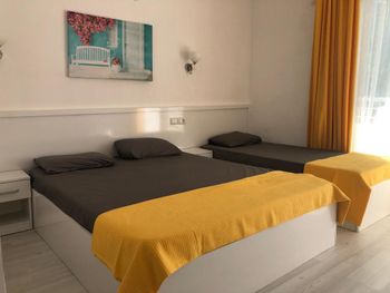 Как хорошо, что мы остановились в этом отеле только на 2 дня! Семья из 4-х человек в июле 2024. Приехали в 4 .00 утра с аэропорта , а заселились только к 14.00. В номере не работал слив в душе, вода стояла и воняла плесенью. На ресепшене сказали, что о проблеме знаем , но не знаем как её решить. Не работал слив в унитазе, но его как то починили. При заезде отсутствовали гель и шампунь в номере. До пляжа метров 150, но там нет раздевалок и туалета. Чтобы зайти в море необходима спец обувь тк КАМНИ! У нас были завтраки и ужины. Мы не увидели индейки и курицы. Жареные полуфабрикаты из неизвестного нам мяса. Но овощи как свежие так и тушеные очень вкусные! Воду покупали в магазине через дорогу тк в отеле её не дают. Кофе только растворимый и сухие сливки. На завтрак: отварные яйца, овощи, хлопья. Мясо мы не увидели также отдельно покупаю шаурму в ресторане, был какой-то сомнительный фарш. Бассейн небольшой. Чистят его с хлоркой ночью. Бар тоже есть, но для нас показались цены высокие. Вечером выйти не куда тк отель возле дороги. Отель очень бедненький и явно не тянет на 3 звезды!