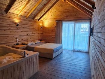 Номер, точнее что-то вроде деревянного строения с одной комнатой в которой рядом с кроватью находилось джакузи, в санузле душ преимущественно с холодной водой. Отсутствовали шампунь и тапочки, полотенца были, но их не разу не меняли, также уборки в номере тоже не было. Матрас с подушками крайне жесткий, спишь как на досках. Море рядом, в двух минутах ходьбы но пляж не обустроен. Бассейн на территории отеля есть, но очень маленький. Как вода не знаю, я им не пользовалась. Обвешенного русскоговорящего персонала не было, да и любой персонал нужно было ещё найти. Спасло только одно, чистое и тёплое море)