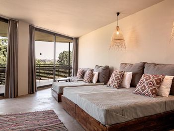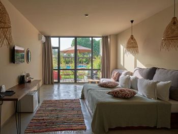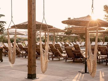 Хороший wi fi , зона бассейна-,два больших стильных бассейна много лежаков , качелей , гамаков
