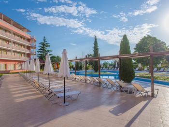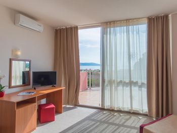 Ну начну с того что отель действительно новый , НО с минусами потому что ремонт не довели до конца , видимо торопились по скорей открыть его . Стены не ровные , где бассейн плитку на половину поставили , на остальной половине ещё виден цимент. Так же с потолками , видно что шпаклевкой не доконца доработанны .... короче сами все увидите . Написано что отель первая линия пляжа , теоретически это так но для меня первая линия это когда выходишь и сразу море , а тут где то минут 7 надо идти :( Второе , мы заплатили на номер с видом на море , не видитесь ... на половину виден был бассейн и с далека море (за деревьями ) . Про уборку : меняли полотенца каждый день но честно они совсем не свяжо пахнули , пол плохо мыли :( оставались волосы :( персонал молодой , приятный !!! Еда тоже хорошая , все свяжо и вовремя :) ещё плюс что отель хоть и молодежный но тихий ... целый день DJ ставит хорошую музыку ! Как то так .... :) для Болгарии не плохо но конечно и не супер ;)