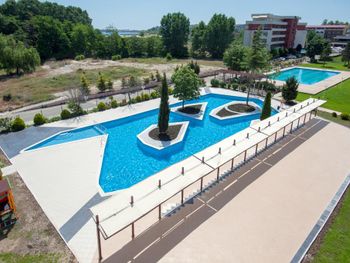 На территории есть два бассейна на улице и один внутри с подобием джакузи. Есть SPA, но необходимо заранее его заказывать. Не большое поле для футбола на траве, большие шахматы.