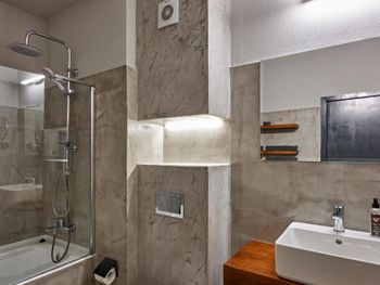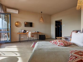 Завтраки плохие. В этом году нет собственного пляжа из-за COVID-19. Ванная комната просто ужас, оформление, как в какой-то больнице. И к тому же подтекает вода на пол, когда купаешься.