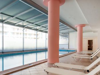 Очень медленный странный лифт , темный коридор , темная ванная , ощущение что как в тюрьме , плохое кофе , хорошо, что costa cofee рядом , плохая шумоизоляция, летом когда жарко наверное вообще невозможно будет уснуть , а в сентябре наши соседи включили кондиционер 1 раз и ушли , ощущение что мы жили на гидроэлектростанции , спасибо мальчику с ресепшн , зашёл к ним и выключил, отдыхающие восновном очень шумные поляки , музыка вечером не очень , холодный бассейн