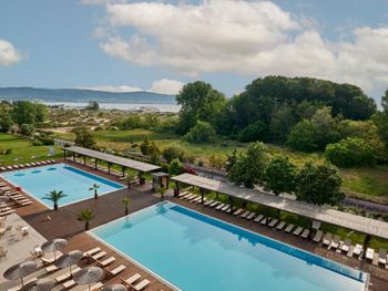 Отель хоть и пишет , что первая линия у моря, но ее отделяют от пляжа охраняемая природная зона с песчаными дюнами и идти до моря надо минут 5 от силы.
