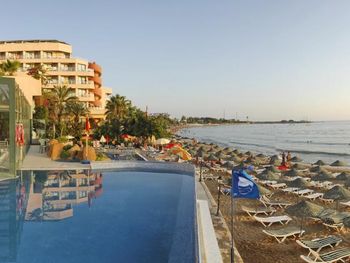Хороший пляж с песком, мелко у берега- довольно широкая мелкая полоса, не волнуешься за ребёнка, когда он там плещется. Хорошая еда, достаточно мест в ресторане. Очень старается команда аниматоров. В целом, Отель понравился.
