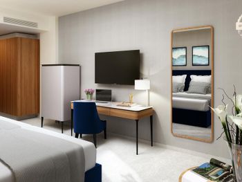 Шикарный номер, со всеми принадлежностями,включая тапочки и халаты,также входят полотенца для пляжа и бассейна,с минибаро(за отлельную плату)-бутылка большой воды в сутки бесплатно,уборка номера и заменаполотенец-каждый день,завтраки превзошли все которые я когда либо видела.Сам отель невероятно красивый,большая территория,изумительно чистая и зелёная территория, с бассейнами,один большой на улице центральный у фонтана с подогревом,и пару небольших по типу джакузи круглые очень тёплые,что очень здорово для тех,кто с маленькими детьми.