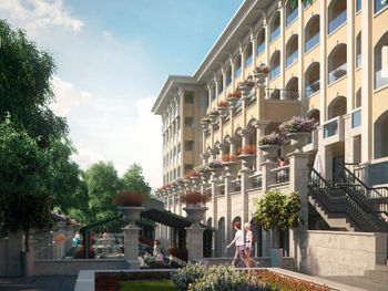 Красивый отель в замечательном месте расположен. Уютный внутренний дворик. Атмосфера осенью особенная тут .