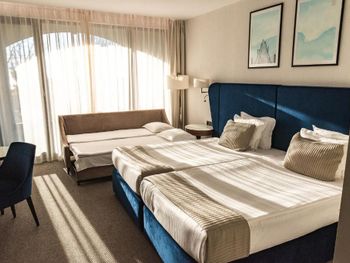 Проживали с женой один день, 10 декабря. Декабрь- это зима, пусть и мягкая болгарская, в номере была t +22, никакие манипуляции с пультом управления кондиционирования воздуха, даже после приглашения персонала гостиницы, изменить её не смогли. Мы в доме привыкли зимой иметь 25. Дверки гардероба закрывались после восьмого раза))), и делать это нужно было очень нежно.Болею за Ливерпуль, играли Лигу Чемпионов в этот день, нашёл ли я канал с трансляцией? Нет, к сожалению, но в небольшом ресторанчике неподалёку, она была)). Если Вы требовательны к предметам сна - подушка,одеяло, Вам в другое место. Но матрас достаточно качественный. Завтрак - всё что Вам нужно знать, это кофе Нескафе, пусть и из современных кофемашин. Яйца должны быть теплыми, а выпечка свежей? нет не слышали))! Качество укладки плитки в санузлах, оформление сливов для воды и крепление полочки в душе на непоцинкованные(соответственно ржавые) саморезы - это бонус! Если Вы хоть раз останавливались в какой нибудь скандинавской транзитной гостинице неподалёку от любого аэропорта, Вы поймёте о чём я)).Мы провели один из лучших дней с женой, просто у нас был маленький семейный юбилей))! Пили шампанское, жрали бельгийский шоколад с сыром и грушами, ржали всю дорогу!