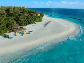 Хорошая и ухоженная часть острова только где расположены на берегу виллы пряж и часть коттеджей с номерами до пляжного бара, а дальше водой размыта местами береговая полоса и картина не эстетичная! Ужасный трансфер который стоит на 2 чел 1200 евро! 30 мин ждали взлет на воде в закрытом самолете потому, что была очередь на посадку, жара в салоне без вентиляции и запах керосина был настолько сильный , что можно было потерять сознание, а когда мы летели обратно в 5 утра ,то самолет почему -то залетал за туристами на соседний остров вместе с нами , это страшно взлететь и потом опять сесть в бушующее море, качаться там на волнах до тошноты и ожидать пока нам подсадят пассажиров!