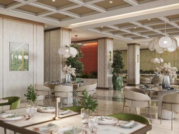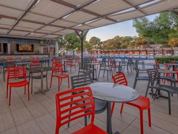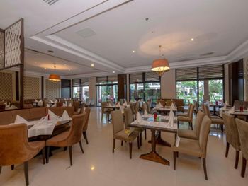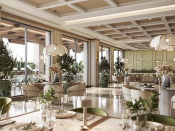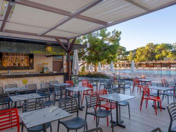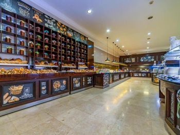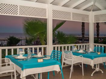 Еда: кормежка (именно так она и выглядела) ни о чем. еда не казалась свежей, десертов таких плохих не встречала, много заветренного. Рыбы красной нет, мяса нормального бутербродного нет, только их прессованная бумажная колбаса. сыр тоже всегда был залежавшимися и влажным. Аппетита еда не вызывала совсем. обслуживания в ресторане нет, если ты сам не подойдёшь к официанты и не попросишь кофе. Много грязных столов, очень медленно убирают, посуда попадалась недомытая. Писали про мух-на улице их много, не советую солиться на верандах. в помещении тоже попадались, но меньше.