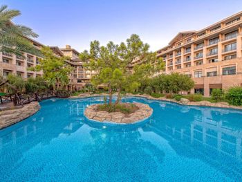 Еда, доброжелательность, нам предложили бесплатный павильон на один день в качестве комплимента, заменили фен, большие бассейны и хорошая территория, аквапарк, красивый холл и зона ресепшен, много мест на пирсе