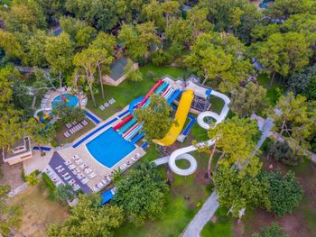территория: если смотреть на карту-территория большая, но 80% территории это просто отбельные виллы (тоже сомнительного качества) и дорожки между ними. Для основного корпуса территории только пятачок перед отелем и кусочек хлюпенького аквапарка в самом конце территории. Все лежаки заляпанные, постройки ушатанные.