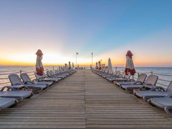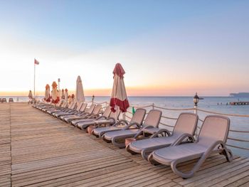Пляж: обширный, песчано-галечный. Есть часть, где предпочитает быть основная часть отдыхающих, так как не надо далеко идти, где есть станция водных развлечений, двухуровневый пирс с шезлонгами и зонтиками, с которого классно нырять, рядом расположен основной бассейн, большинство баров, закусочных, анимация. А есть отдаленный немноголюдный, но полностью оборудованный пляж рядом с виллами, аквапарком и пляжными домиками. Пляжные домики – это отдельное удовольствие. Я провела в таком целый день. Обслуживание, фрукты, напитки, рядом аквапарк, диванчики и мягкие подушки, холодильник и вентилятор. И никого! Тишина, покой и море.