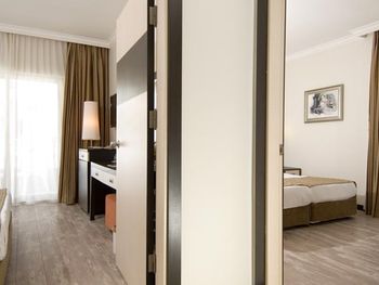 Из минусов: было очень обидно, когда в двух отелях соседях играет громкая музыка, качают современные хиты, а у тебя тишина или играет негромко спокойная турецкая музыка.. Видимо, такая концепция. В общем, детям вроде бы есть куда сходить: небольшая игровая комната с приставками (вход 1 евро было написано) бассейн, вечером аниматор по некоторым дням проводит игры с детьми, но а в остальном все сами по себе. Была финская баня, бесплатно, в хамам не попали, сказали, что там холодно, мы не пошли. Итоговая оценка 5-, так как всё же чувствуется, что местами нужен косметический ремонт, но всё остальное понравилось! Поэтому фанатам красных ковровых дорожек и идеально выкрашенных коридоров - совет выбрать другой отель, всём остальным - welcome. Номера кстати норм, вопросов не было. Ну и да, музыки не хватка, в лобби, около бара полудискотека тоже не вызывала восторга, но и не напрягала)