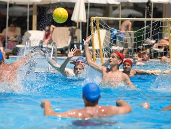 Про спорт необходимо сказать. Он как бы есть. Но в маленьком тренажерном зале пяток самых популярных тренажеров со сломанным велотренажером. Настольный теннис в его теперешнем состоянии лучше убрать и не позориться - фанерная доска на раме с кое-как намотанной на штырях сеткой. Стоит на самом ветренном месте, и мяч, если ударить посильнее, летит либо на газон (обходить, чтоб его вернуть, метров 200), либо под ноги сидящим за столами. Играл в соседнем отеле, там стол с двух сторон огорожен, и поверхность более нормальная (хотя, конечно, дома я бы и на таком играть не стал). Купить нормальный складной всепогодный стол от 19 мм плитой, с чехлом и встроенной сеткой, плюс 3-4 матерчатых щита - это 700-900 евро, не такие большие траты...