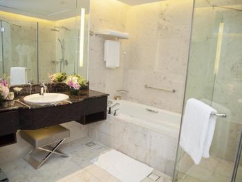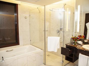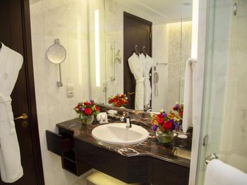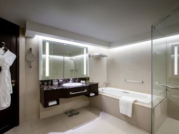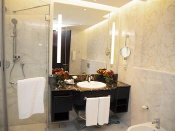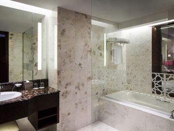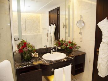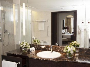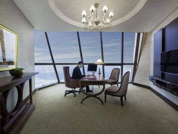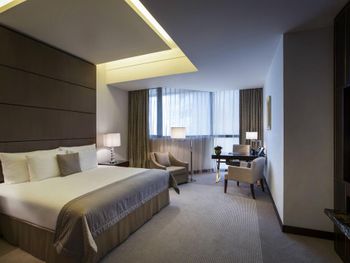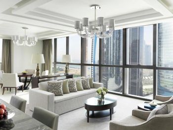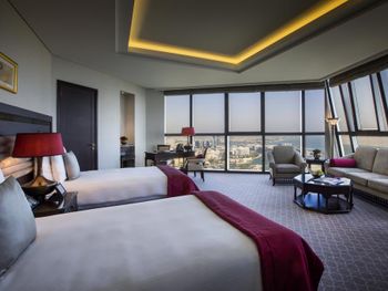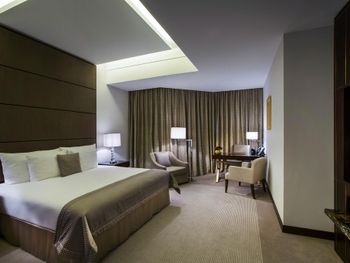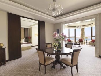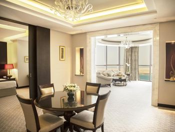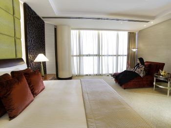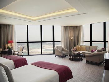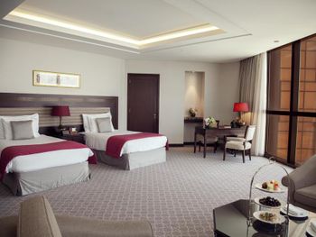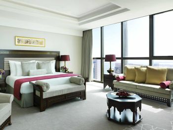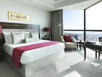 Прекрасный отель, сочетающий великолепие арабских мотивов и современную архитектуру; просторные номера с понорамным остеклением, безупречная кухня ресторана от обаятельного Шефа, благожелательный персонал; из номера можно любоваться чарующими закатными видами на великолепный ансамбль Qasr Al Watan