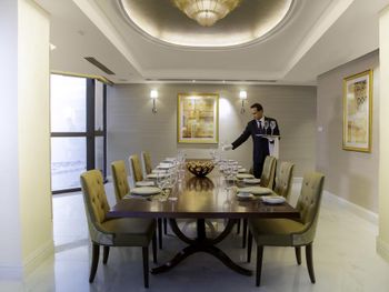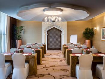 Просторный бальный зал Al Dana с потрясающим декором и завораживающим видом на море прекрасно подходит для проведения таких торжеств, как свадьбы, помолвки или дни рождения.