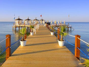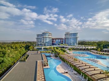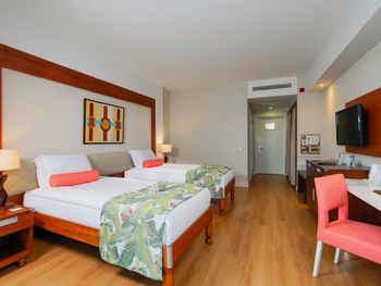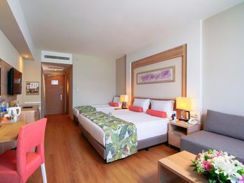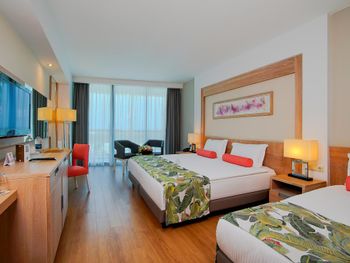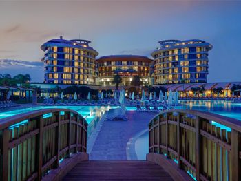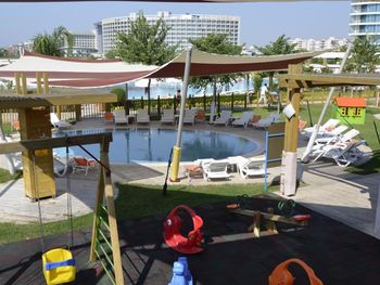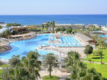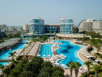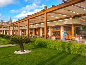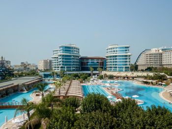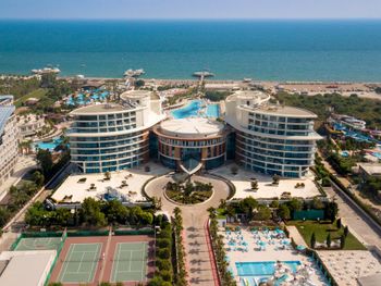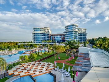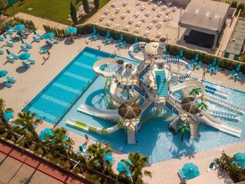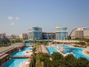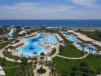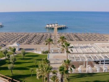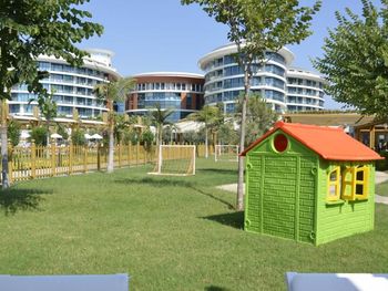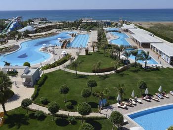 Курортный отель Baia Lara занимает обширную территорию. К услугам гостей собственный песчаный пляж, деревянная пристань, большие открытые бассейны, аквапарк с 9 водными горками, крытый бассейн с подогревом, спа-центр и спортивные сооружения.