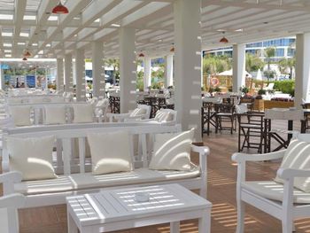 Есть рестораны a la carte, все платные (30 евро с персоны). Лучший из баров – в фойе: там делают качественные коктейли. Худший – на пляже: немилосердно халтурят, а то, что там громит, трудно назвать музыкой – это набор ритмизованного уханья. Вечерами музыка превращается в пытку: от децибел сотрясаются стены номеров, не спасают ни закрытые окна, ни беруши, и это беснование, вопреки законам о тишине, продолжается до часу ночи, а иногда и позднее. Предельная зашумленность территории делает использование отеля Baia Lara, на мой взгляд, невозможным.