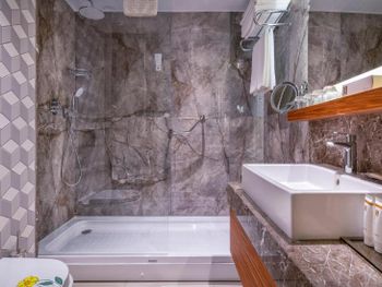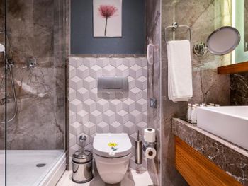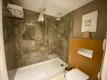 Ужасный санузел, невозможно отрегулировать душ, температуру воды. Ребёнок обжёгся водой, потому что температура постоянно скачет. Ужасно скользкий пол душевой.