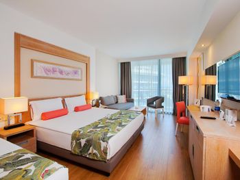 Понравилось очень, что дали номер категорией выше чем я бронировал, приятный сюрприз. Наличие шикарного олимпийского бассейна. Хорошее питание, многообразие блюд и локаций. Хороший пляж и пирс. Уверенный и быстрый интернет. Отель сдан в 2009 году, состояние номеров отличное, явно была реновация.