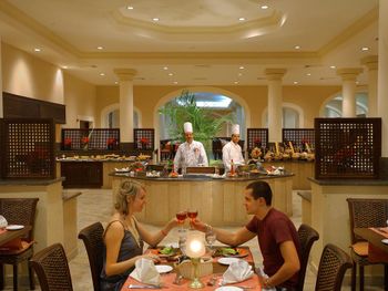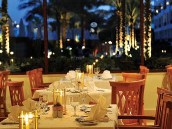 Не понравилось, что в основном ресторане за 6 дней не попробовала клубнику и манго. Из фруктов - зелёная дыня безвкусная, импортные яблоки и бананы не первой свежести. Вино белое подают до не приличия разведённое. Вместо апельсинового сока могут принести напиток Юппи. Официанты очень шумные, при отдыхающих начинают ругаться, выяснять отношения между собой. Отель, который позиционирует себя как 5 звёзд очень скудно предлагает выбор сыров и колбас. Я не любитель колбас, но хотя бы сырокопченую нарезку, сыр приличный хочется видеть, а не только синтетическую вареную колбасу местную фету. Потом обратила внимание, что некоторые блюда, которые были не сьедены на ужин, переработаны в блюда на завтрак. Шеф повар горячих блюд , видимо хронически влюблен, потому что всё пересолено. И ещё хочется сказать, что с ассортиментом блюд фантазия не работает. Много боюд, которые даже на вид выглядят не вкусно. Вообщем, я могу ещё много говорить о питании. Вывод -кухня -слабое место отеля.