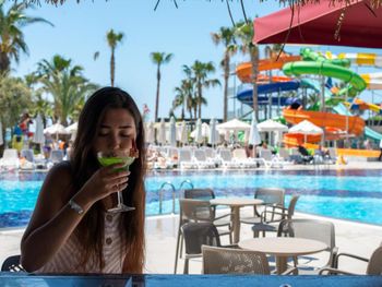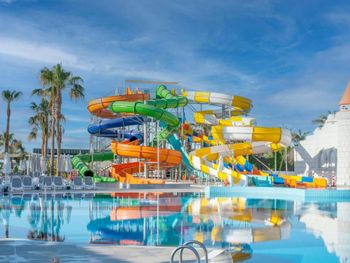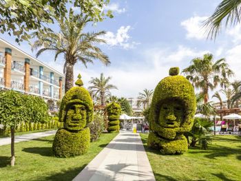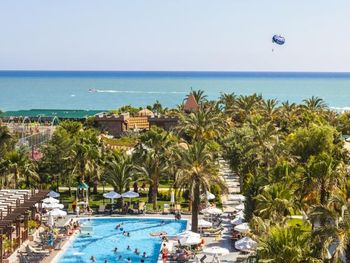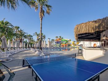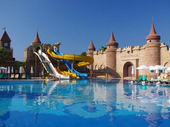 Отель идеален для отдыха с детьми, небольшая уютная территория, водные горки, бесплатные детские аттракционы, мини клуб, живой ПАВЛИН!!! с шикарным хвостом, отличные аниматоры не дадут скучать ни взрослым ни детям. Ресторан с меню на любой вкус. При общении с персоналом отеля проблем не возникало, практически все понимают русский язык.