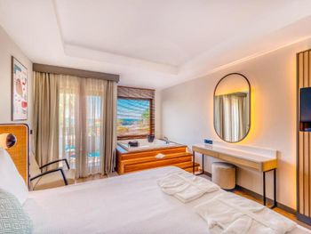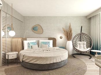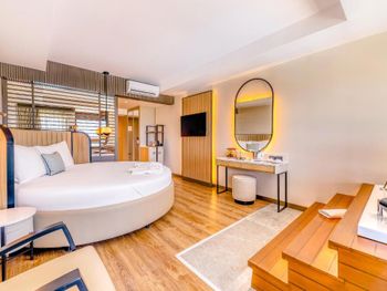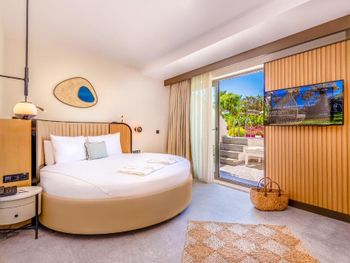 Замечательный отель, с вежливым персоналом, вкусной и разнообразной едой. Номера у нас были с выходом в свой бассейн, с лежаками и зонтом. Это очень круто, а кровать в комнате круглая, что придаёт свою пикантность?