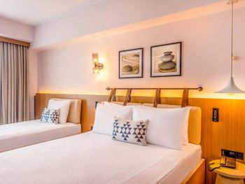 Довольно-таки шумно, маленькая территория, слышно даже все с соседних гостиниц, так как гостиницы очень близко. Также гремят везде кондиционеры и вентиляции и т.д. Поэтому берите беруши если идете спать рано и любите тишину.