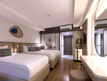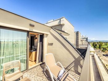 Отель красивый, просторный, с современным ремонтом, бесплатный вай-фай. Территория ухоженная, постоянно ходят сотрудники отеля и прибираются, всё очень аккуратно. Мы брали стандартный номер (2411), очень понравился - большой балкон, так как это последний этаж, комфортная кровать, мини-бар и очень классный душ. На любые замечания отель реагировал оперативно, большое спасибо!