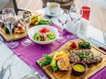 В ресторане Aspendos с обслуживанием по типу «шведский стол» подаются блюда традиционной и интернациональной кухни. Кроме того, в курортном отеле Belek Beach работают итальянский ресторан Flamingo и турецкий ресторан Sofra с обслуживанием по меню. В снэк-баре отеля можно попробовать приготовленные вручную гезлеме (традиционные турецкие лепешки).