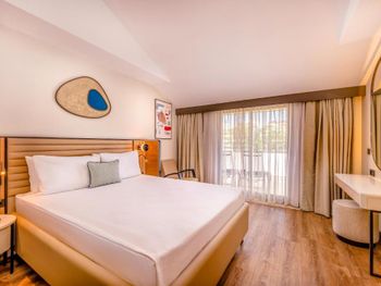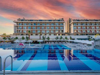 Среднего класса гостиница предлагает разные развлечения и услуги. Есть два корпуса ближе к морю, в котором заселяют с детьми до 13 лет, и подальше од моря где +13. Сделана реновация нетипичная Турецкому стилю, но все аккуратно, незагруженное и стильно. Еда однообразная, напитки как импортного так и иностранного производства. Анимация старается, развлечений достаточно как для взрослых так и для детей. Много лежаков на пляже, но очень близко к друг другу.