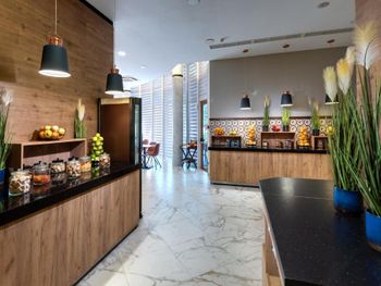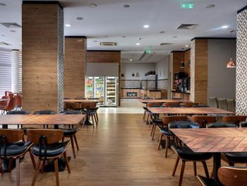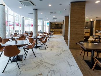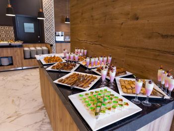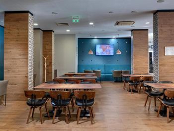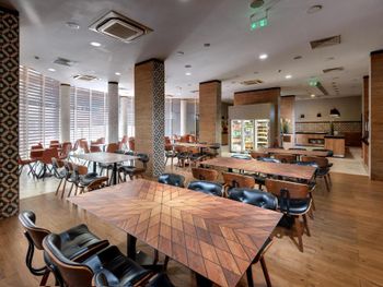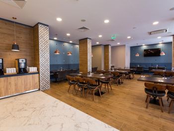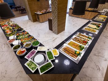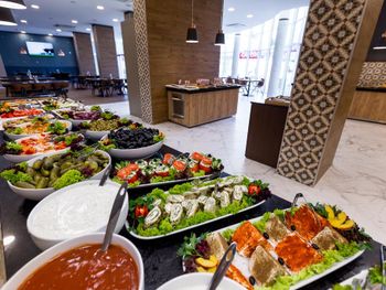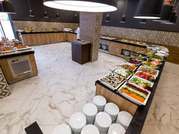 Слишком маленький ресторан, иногда приходилось ждать столик. Не убирали грязную посуду со столов. Сразу после наступления времени оконч завтр, ужина выключались аппараты с напитками и активно убиралась еда со шведского стола. В др отелях обычно в это время только закрываются двери на вход.