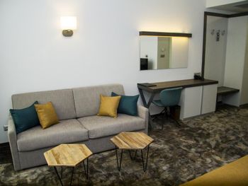Огромный номер, расположение рядом с автобусным вокзалом, очень легко добраться из/в аэропорт.
