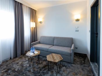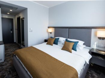 Начну с того, что заселили в номер выше категории той, который бронировала изначально. Может это был подарок на день рождение или может потому что не было других номеров) но мне понравился номер, он был просторный, мебель новая, кровать удобная, завтрак разнообразный. Отель супер!