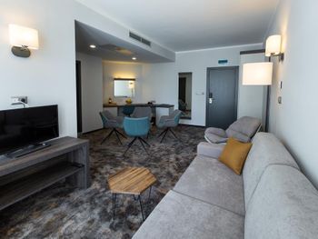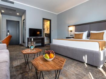 Очень приветливый персонал, говорят на русском и на иврите. Номер большой и чистый. Есть холодильник и смарт телевизор. Кровать удобная. Есть утюг на первом этаже возле лифта. Завтрак хороший . Бассейн не большой, есть классные горки для детей и подростков. Отель находится в центре курорта, все близко. Мы остались очень довольны выбором этого отеля и будем рекомендовать его.