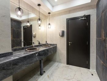 Есть нюансы по "инжерке": освещение на любителя, темновато; фанкойл шумит больше, чем охлаждает; уклон в душевой не соблюден, вода стоит; дверцы в душевой тоже нет, пол в ванной постоянно мокрый. Хоть бы водосгон поставили.