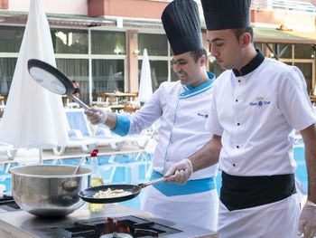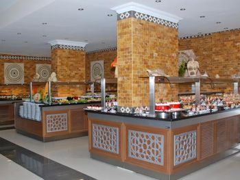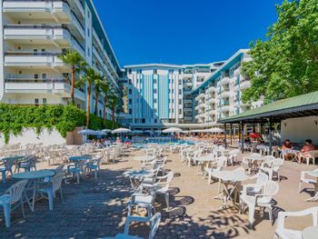 Не понравилось: 1. Долгое заселение 2. Некомпетентность персонала: доказывали что тип размещения в путевке DBL означает 2 раздельные кровати, куда нас с мужем и поселили, хотя во всем мире известно что DBL это одна большая а TWIN разные. 5 дней добивались переселения. 3. Очень жёсткие матрасы! Невозможно выспаться, болела и спина и шея. 4. Мечеть будит по ночам очень громкими песнями 5. До моря прилично ходить, 800 м, обратно ещё и в гору ( но есть автобус на пляж, можно под него подстраиваться). 6. Для еды отводится 2 часа, в которые должен покушать весь отель, и это просто капец, таких очередей я просто не видела раньше, на ужин особенно. Блюда в ресторане выставлены кучей, поэтому когда один человек накладывает салат, остальные 3-4 чашки недоступны. Такая же ситуация с чаем и кофе, все находится в одном пятачке из за этого, тот кто наливает чай, мешает тому кто наливает кофе. 7. Отсутствие вай фая в номерах. 8. Плохая шумоизоляция. Причем мы слышали не соседей а коридор. Дверь хоть и массивная имеет приличную щель внизу, вы слышите всех кто ходит по коридору.9. Большой минус в отеле нет бесплатных весов для взвешивания чемоданом. !!! Это стоит 1 евро, за них весы работают 10-15 секунд. К нас был ограниченный багаж 10 кг приходилось перекладывать вещи, и с этими весами мы могли разориться. Не иметь бесплатных весов в отеле это жесть. 10. Платные лежака и зонтики на пляже.