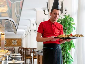На приемах пищи часто не хватает мест людям и они стоя ждут когда освободятся столы, так что приходите пораньше