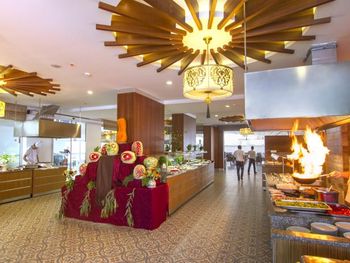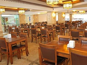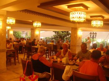 В ресторане отеля для гостей сервируют «шведский стол», состоящий из фирменных блюд средиземноморской кухни провинции Анталья, а также блюд интернациональной кухни. В баре у бассейна можно заказать экзотические напитки. После ужина группа артистов исполняет традиционную музыку и танцы этого региона.