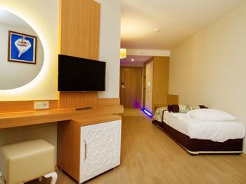С едой не большие проблемы,нет разнообразия,молочная каша только рисовая,либо хлопья.С розетками тоже какое-то проблемы,телефон зарядить возможно только если его выключить,если включённым заряжать,то это займёт больше 3-4 часов.Были проблемы с номером,при заселении обнаружили каких-то букашек,которые сразу начали ползать по телу и одежде,дать другой номер сначала отказались,сказали проведут дезинфекцию,но не помогло,потом был разговор о другом номере,не хотели менять,пока мы не позвонили знакомому(турку)и уже после этого разговора,на следующий день дали другой номер!Ещё очень не понравилось что при заселении с ребенком(5 лет) предоставили номер с двумя односпальными кроватями,это очень не удобно! Мы бронировали 2 номера,в одном из номеров были очень плохие подушки,похоже их постирали и они взбились в один комок!