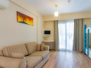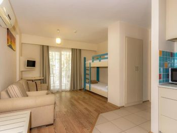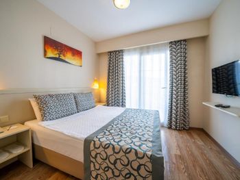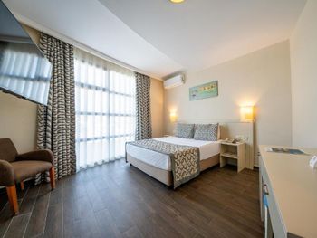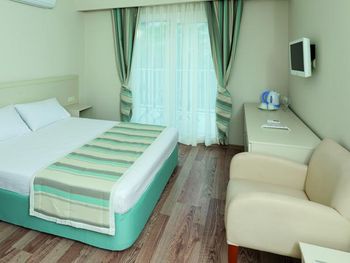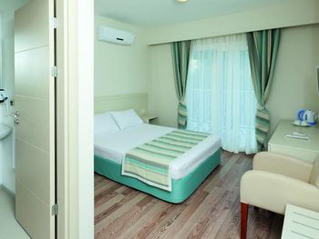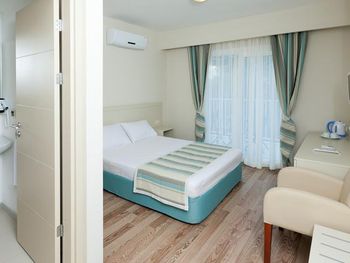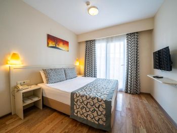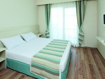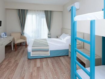 Супер отель! Мы заселились в середине мая, это идеальное время для отдыха в Турции, людей немного, но вода в море уже теплая. Нам без доплаты предоставили большой двухкомнатный семейный номер, это было очень приятно! Номера очень чистые и уютные, ремонт свежий и стильный. Очень вкусный и разнообразный завтрак по системе шведский стол. Большой и чистый бассейн, водные горки, пляж буквально через дорогу. Очень рекомендую этот отель!