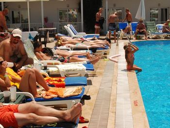 Платный интернет и ночью отключилось электричество (наверное была авария), все шезлонги у бассейна заняты с самого утра но там никто не загорал и не плавал