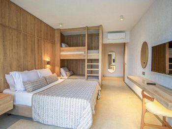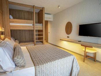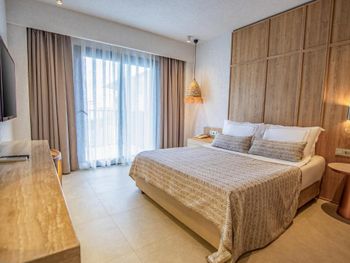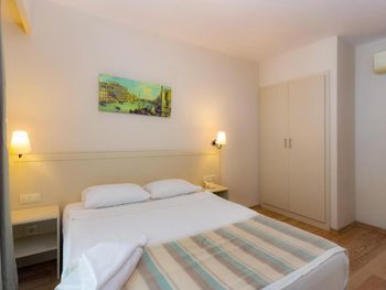 Отель довольно уставший. Мы бронировали номер с 1 большой кроватью, нам дали номер, где были еще 2 -х кровати для детей, что занимало много места в номере и было не нужно, при это некуда было деть вещи, т к шкаф отсутствовал, а в нише для вещей места для 2-х не хватало. В туалетной комнате держатель для бумаги постоянно отваливался, все тумблеры на гелях для душа и шампуне так же отпадали при первом же прикосновении. Отсутствуют крючки для полотенец. В отеле платный вай-фай 3€ в сутки. Напитки в баре очень дорогие, качество очень среднее. У отеля нет своего пляжа.