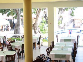 ... хотя по полночи мешал шум от немецкой дискотеки на берегу и светил в окно через шторы мелькающий рекламный экран приморского ресторана напротив. А идея-то не бронировать "Адмиралы" была как-раз отдалиться от шумных дискотек. Возможно, номер, выходящий на зады, а не на море, был бы тише и , наверняка, темнее ночью.