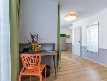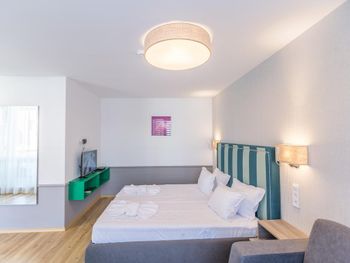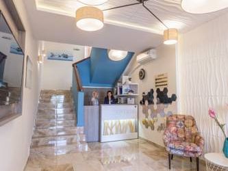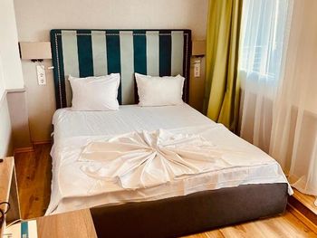 Цена чуть завышена, завтрак каждый день практически без изменений. Нет лифта, не комфортно ходить на последний этаж, в номере Делюкс тоже лестница, ещё плюс этаж. Все бились головой либо об лестницу,либо об потолок над лестницей, не продуманно установлена. Ванна с туалетом только на втором этаже номера, не удобно. В номере нет чайника -пришлось просить. Есть мини бар, но это не холодильник, он очень маленький. Балкон совмещён перегородкой с соседями, но весь шум и сигаретный дым будет у вас в номере. На втором этаже есть тоже кондиционер но пока он охладит второй этаж-крышу можно долго ждать. Дверь балкона плотно прилегает,но напротив в здании каждую ночь гремит шумная дискотека, нас трясло на кроватях до четырёх утра. В ванной чисто, но не комфортно, унитаз установлен так что нужно ещё на на нем разместится между двух стен, при умывании бились головой об вешалку для полотенец, низко установлена. Персонал и хозяйка отеля не пустили нашу маму которая отдыхала неподалёку к нам в номер посидеть,поговорить,пришлось всем спускаться к ней с третьего этажа и разговаривать в холе. Хотя мы спокойно входили в гости в гостиницу к маме. P.S. Гостиница хорошо подойдёт глухому спортивному карлику который ест одно и то же.